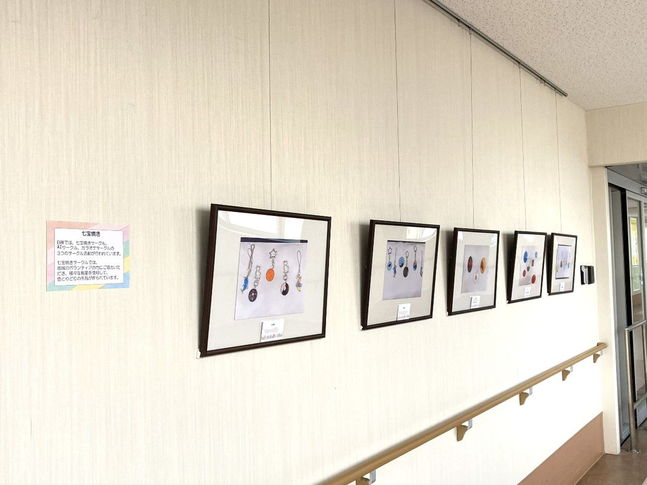 B棟では、七宝焼きサークル、AIサークル、カラオケサークルの3つのサークル活動が行われています。七宝焼きサークルでは、地域のボランティアの方にご協力いただき活動しています。ギャラリーでは作成された七宝焼きの写真を展示しています。