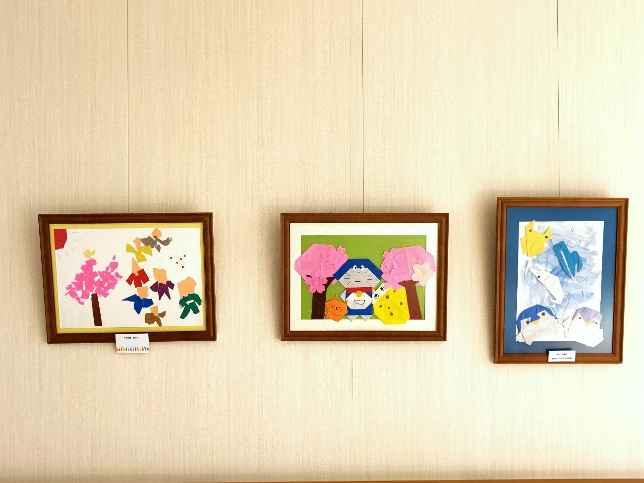 その他、シールアートやインクを使ったマーブリング、折り紙や貼り絵など、バラエティ豊かな作品が展示されています。みなさまどうぞ、お楽しみください。